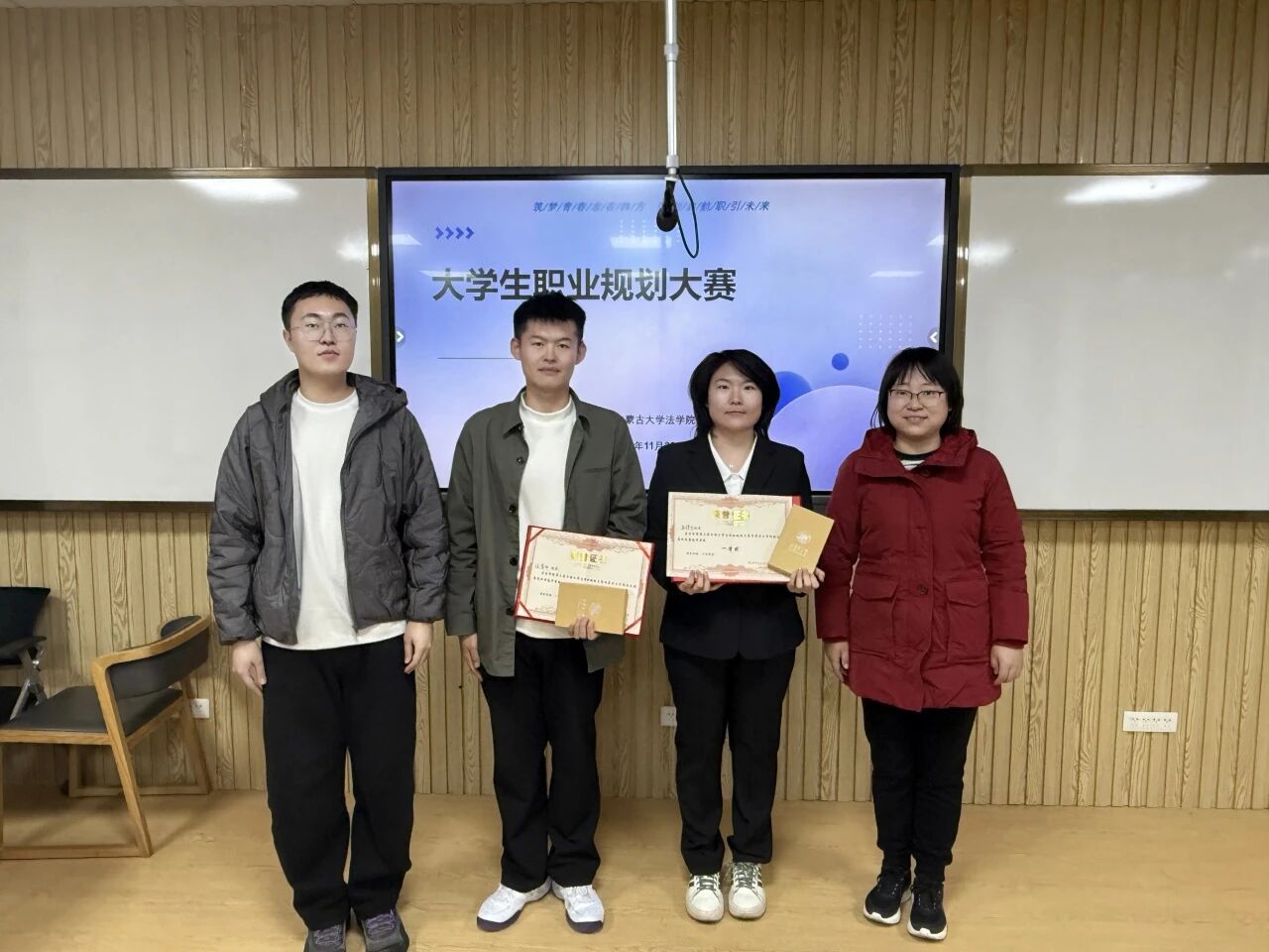 2025年11月20日,我院成功举办大学生职业规划大赛,旨在“以赛促学、以赛促教”,有效引导学子树立科学的成长、成才观与择业、就业观,合理规划学业与职业发展路径,全面提升自身就业竞争力。法学院团委书记兼学工办主任杨晓华和辅导员蒋雪松作为评委参与比赛。