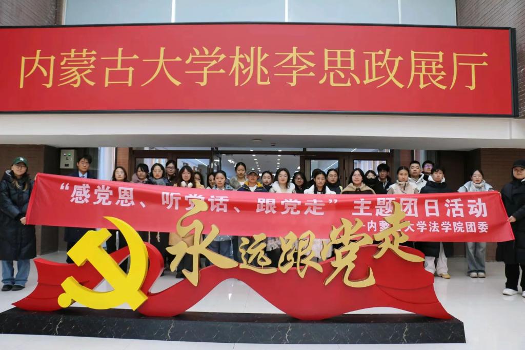 为引导团员青年厚植家国情怀、勇担时代使命,12月31日上午10:30,我院于内蒙古大学桃李思政展厅举办了“感党恩、听党话、跟党走”主题团日活动。我院“薪火”理论宣讲员王浩然担任主讲,内蒙古大学法学院第十四期青马班学员、各班团支部书记及委员共同参与此次活动。