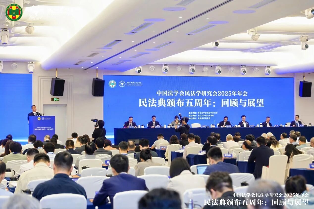2025年10月18日至19日,中国法学会民法学研究会2025年年会在浙江省杭州市顺利召开。本届年会由中国法学会民法学研究会主办、浙江大学光华法学院承办,主题为“民法典颁布五周年:回顾与展望”,除主会场外另设七个平行论坛,共涵盖21个单元。与会专家学者围绕全面贯彻实施《民法典》的基本问题、民法基础理论和《民法典》各编的实施问题、数字法学与《民法典》的实施问题等展开了深入探讨。我院祝之舟教授和王洪广博士受邀参加本届年会。