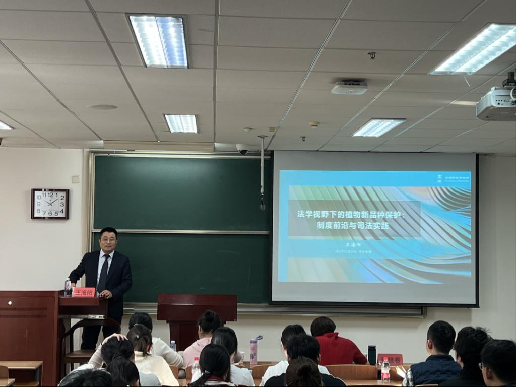 为深入贯彻落实国家种业振兴战略,加强植物新品种保护的法治研究与实务交流,11月25日上午,内蒙古大学法学院主办的讲座在玉泉校区卓越楼303教室顺利举行。本期讲座主题为《法学视野下的植物新品种保护:制度前沿与司法实践》,特邀种业法律实务专家王海阳律师担任主讲人,并由张慧春副院长主持。讲座还特别邀请了呼和浩特市知识产权法庭副庭长王海莹、法官刘亚楠作为嘉宾参与交流。
