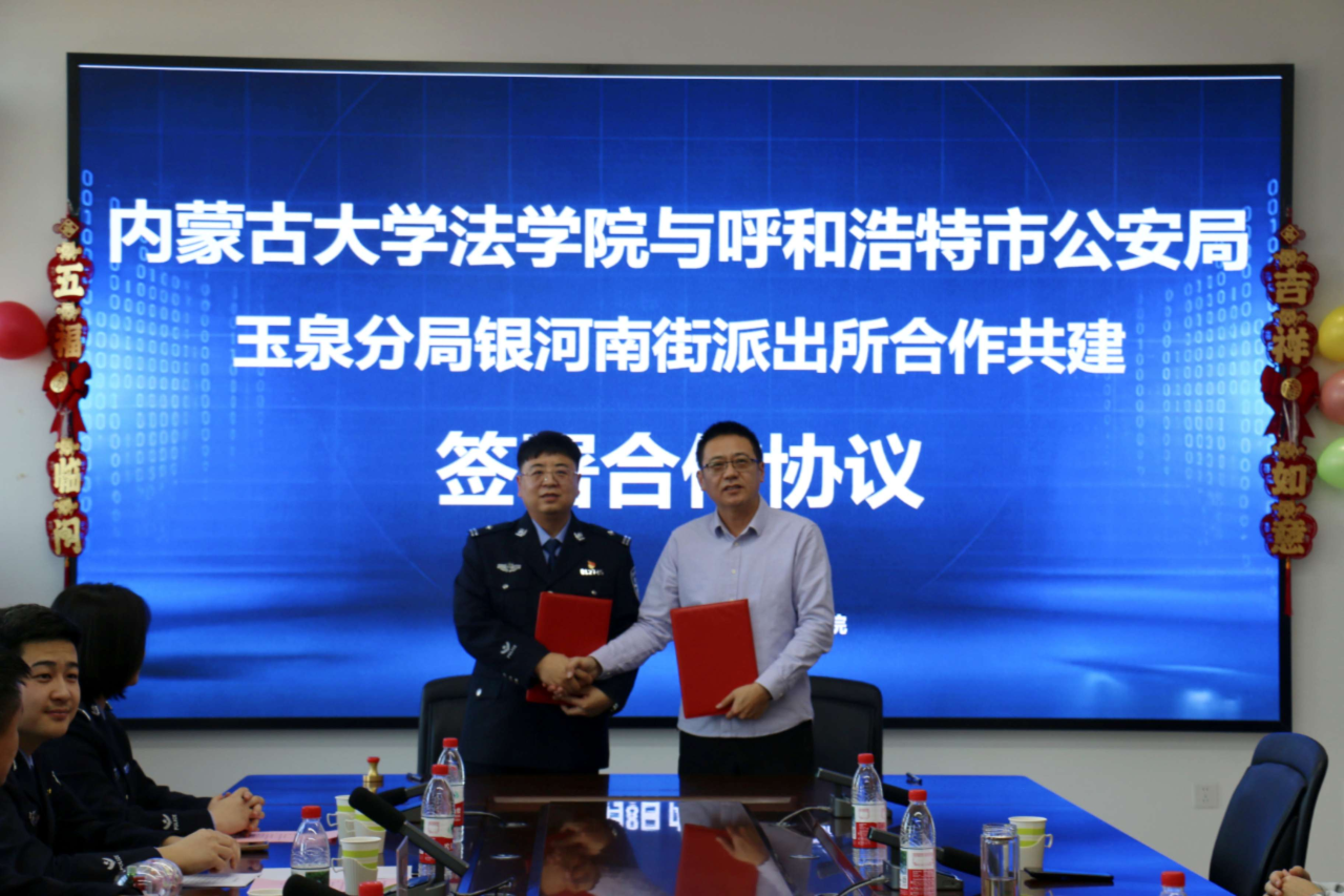 为深化校警合作,推动法学理论与公安实务融合,1月8日下午,我院与呼和浩特市公安局玉泉分局银河南街派出所在玉泉校区东院法学·纪检监察大楼613室举行合作共建仪式。呼和浩特市公安局玉泉分局银河南街派出所、内蒙古大学法学院相关人员参加此次活动。仪式由法学院副院长马波主持。
