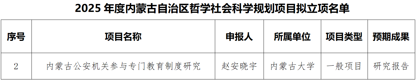 近日,内蒙古社科规划网发布了《关于2025年度内蒙古自治区哲学社会科学规划项目拟立项项目的公示》,我院教师段程旭、赵安晓宇获批一般项目立项。