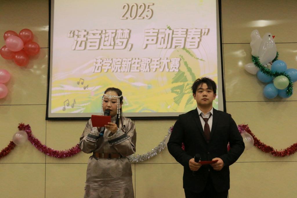 金秋九月,风染桂香,将校园的书卷气揉进清爽晚风;夜色初临,灯映舞台,让新生们的炽热朝气邂逅悠扬乐章。9月25日晚19:00,法学院2025级新生歌手大赛在玉泉校区东院图书馆1号报告厅拉开帷幕。比赛由音乐协会肖恩乐队主唱、校园十佳歌手大赛冠军李良宇;Aozora乐队主唱、法学院优秀歌手王跃铮;内蒙古大学牧歌合唱团团员、法学院优秀歌手杨凯雯;法学院优秀歌手罗梁卉文;法学院优秀歌手桑萨尔担任评委。