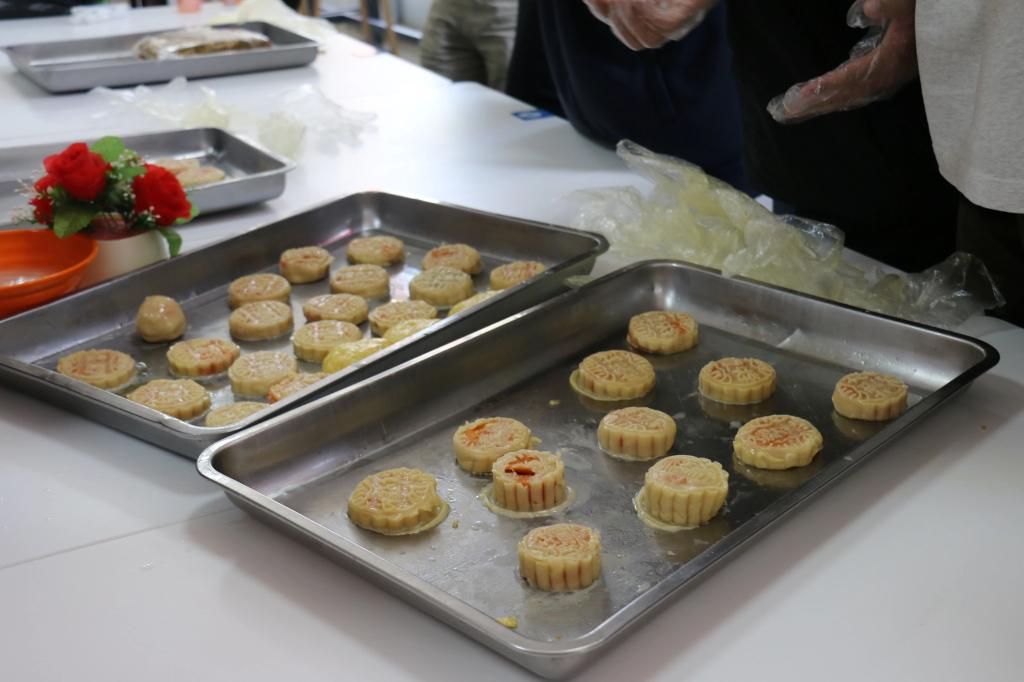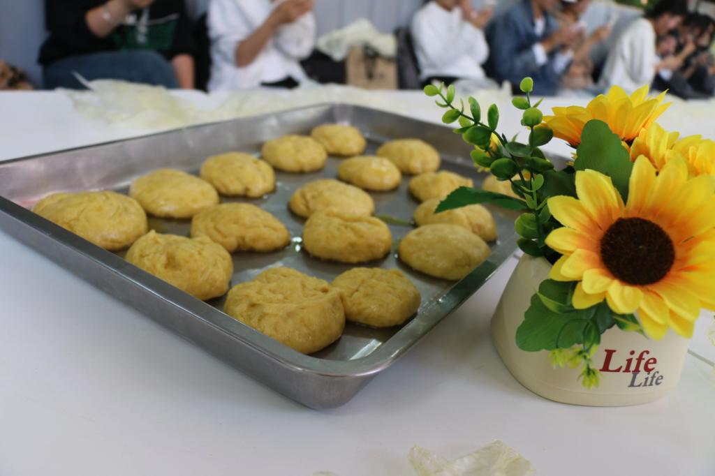 糕点阿姨首先为大家细致演示了月饼的制作方法。随后,在她的悉心指导下,大家纷纷化身“糕点师傅”,揉压饼皮、精准称重馅料、裹馅塑形、模具压花……每一个步骤都考验着耐心与细心。空气中弥漫着醇厚的油香与馅料的清甜,活动现场满是欢声笑语。过程中,大家从最初的手足无措逐渐变得驾轻就熟,当一个个印着精美纹路的月饼在自己手中诞生时,满满的成就感在每个人脸上绽放。这份手作的温度,让这个中秋节显得格外温馨而有意义。